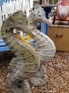 There are wonderful stone seahorse fountain spitters and the ever whimsical mermaid. The magic of the ocean has brought forth these legends of the sea and are highly desired by collectors. And, if you are truly fortunate, an obscure wooden sign with traces of its original painted words, can be salvaged from an old wharf storefront. We never know what we will pirate out from the depths of seaside towns along the coast.